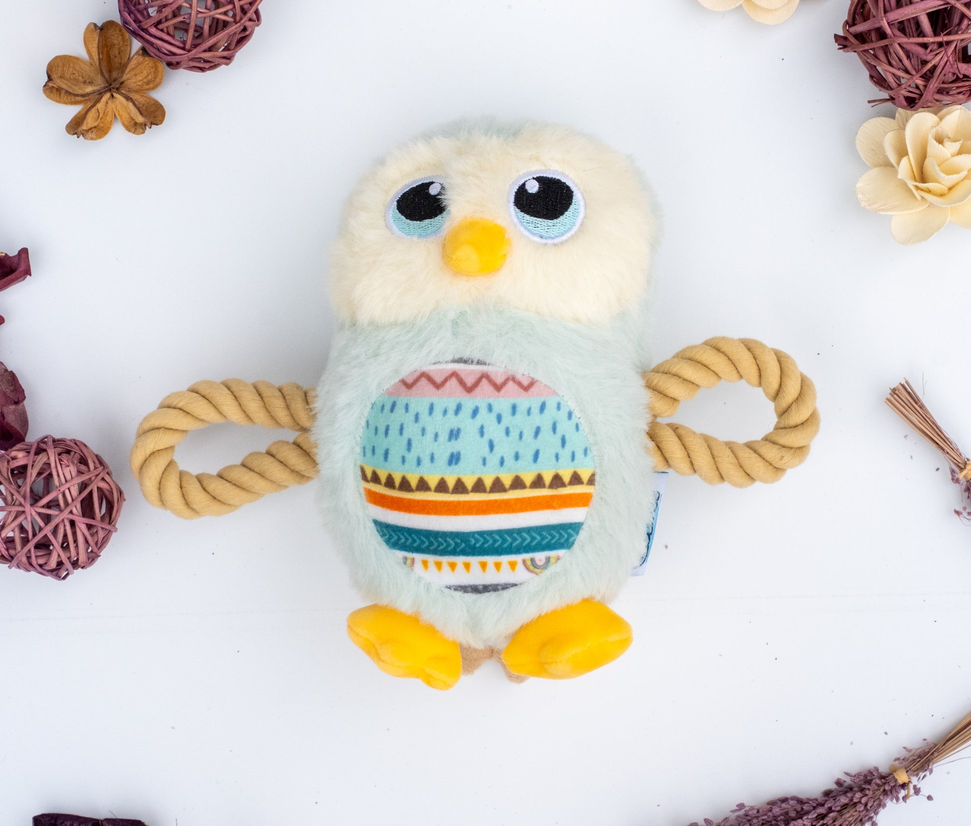 This is one of our favourites. With some dogs opting to use this superstuffed toy as a headrest for a break during playtime! It’s rope wings and squeaker let every pup have a great time.