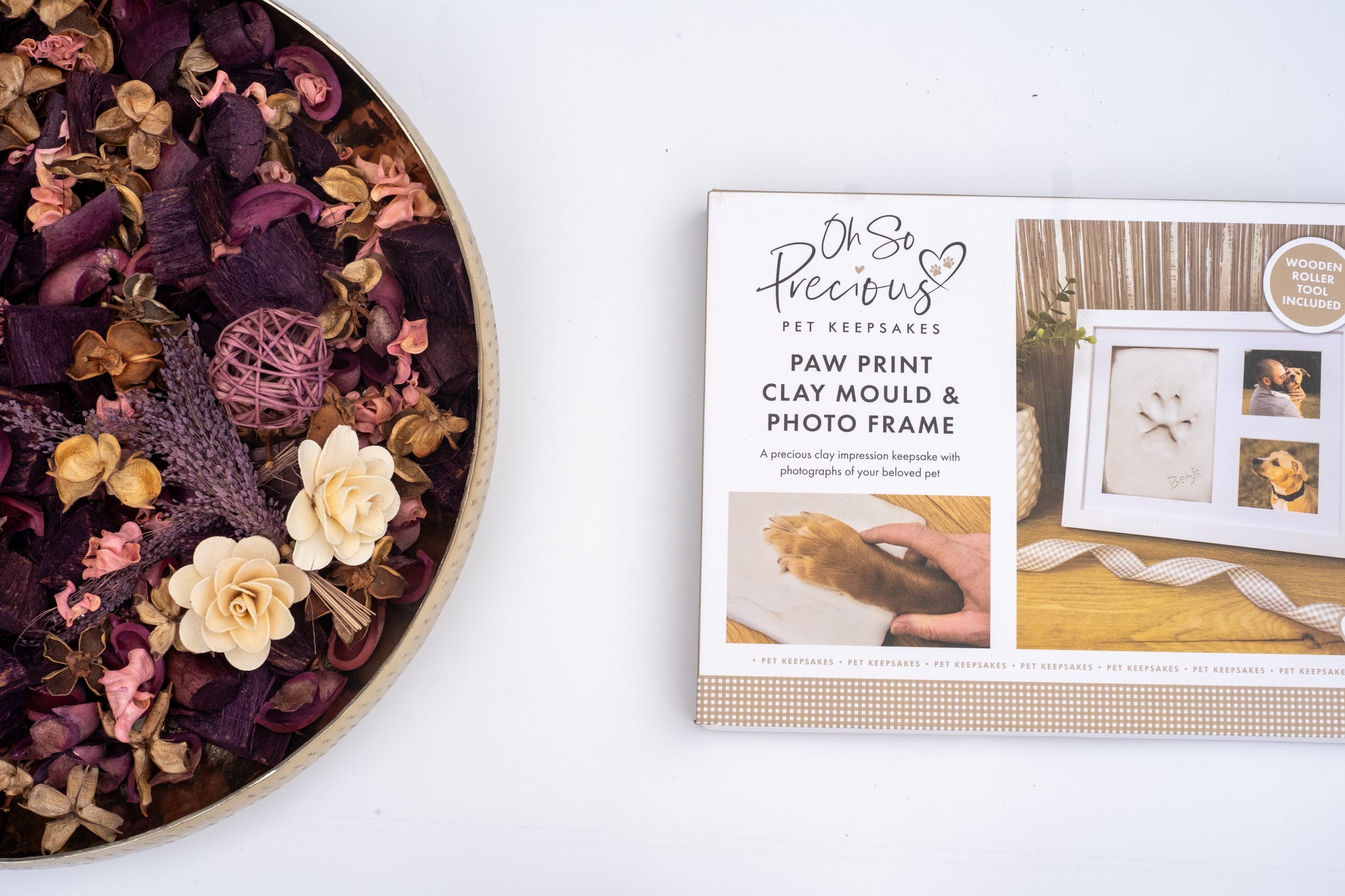 Capture the moment of your pups first few weeks. This kit is ideal for getting your tiny pup's pawprint forever. Trust us it goes so fast! As with everything in the hamper this kit works with any home interior thanks to its high end neutral palette. The 3 aperture mount allows you to place the clay impression in the larger window and your favourite photos in the two smaller windows.